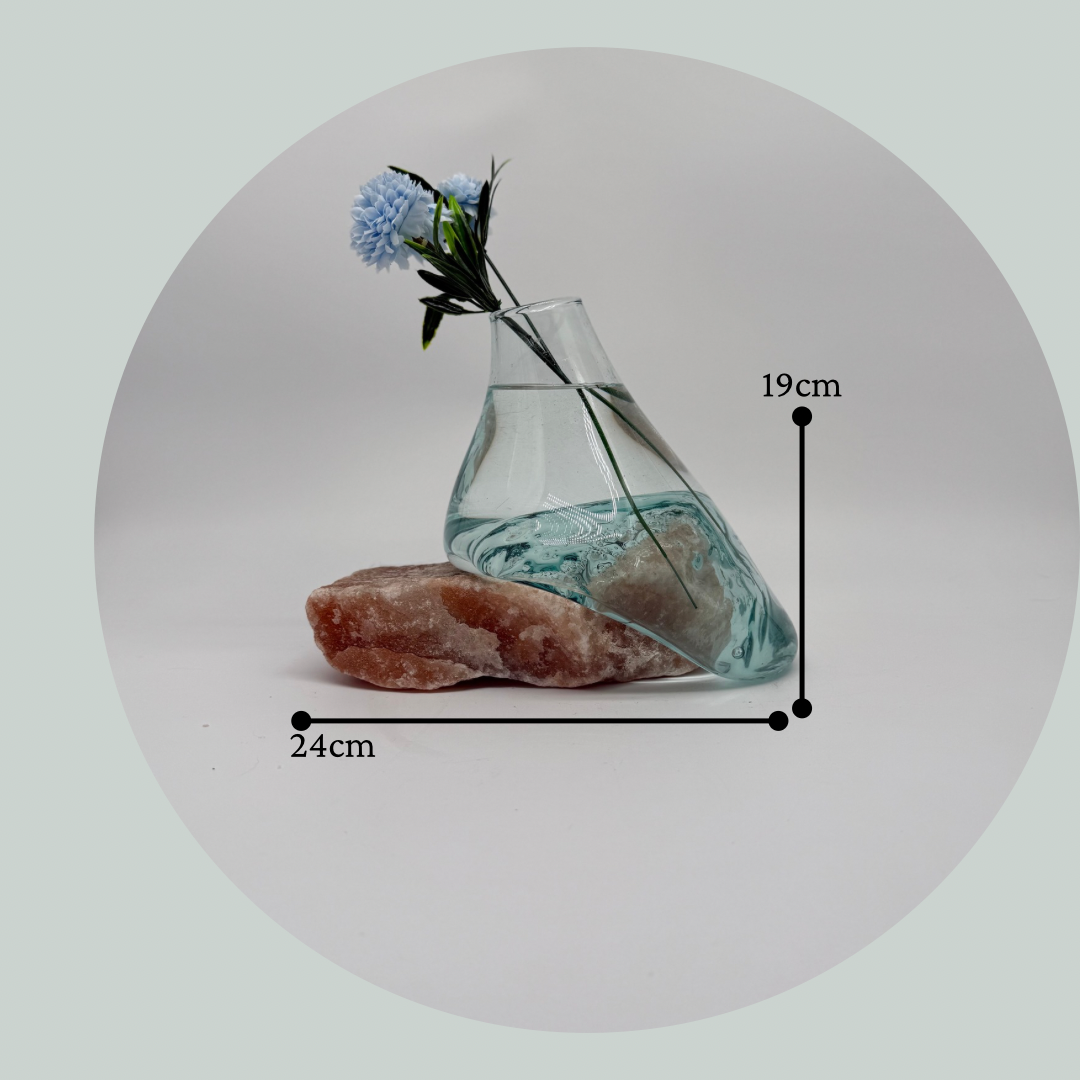 Bring elegance and natural beauty into your home with this Handcrafted Glass Vase with Pink Salt Stone Base 24.