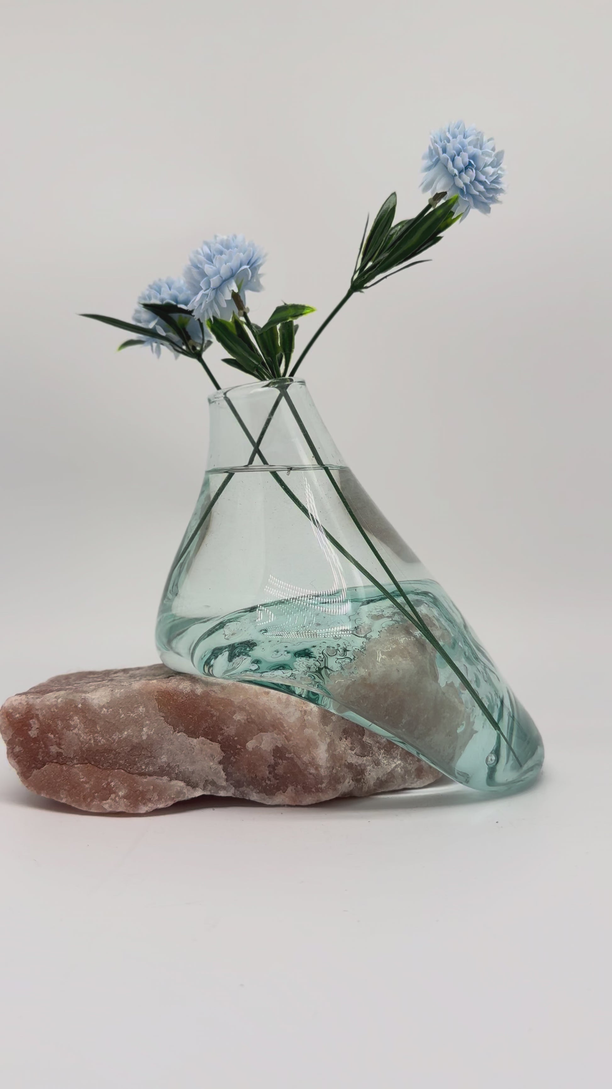 Handcrafted Glass Vase with Pink Salt Stone Base 24