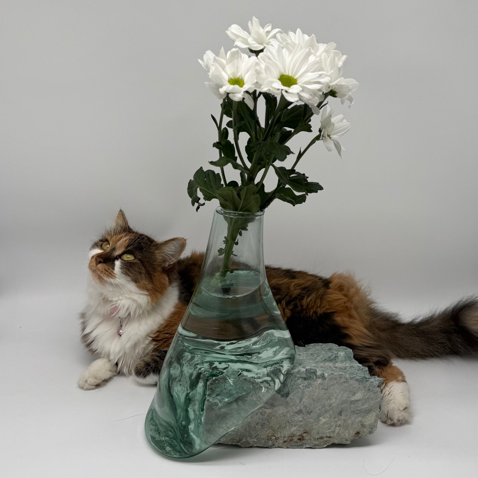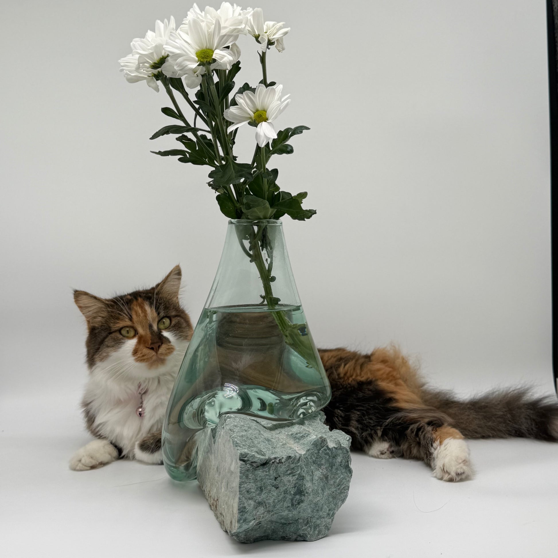 Handmade Glass Vase with Blue Mineral Stone Base – Tranquil Grace 25